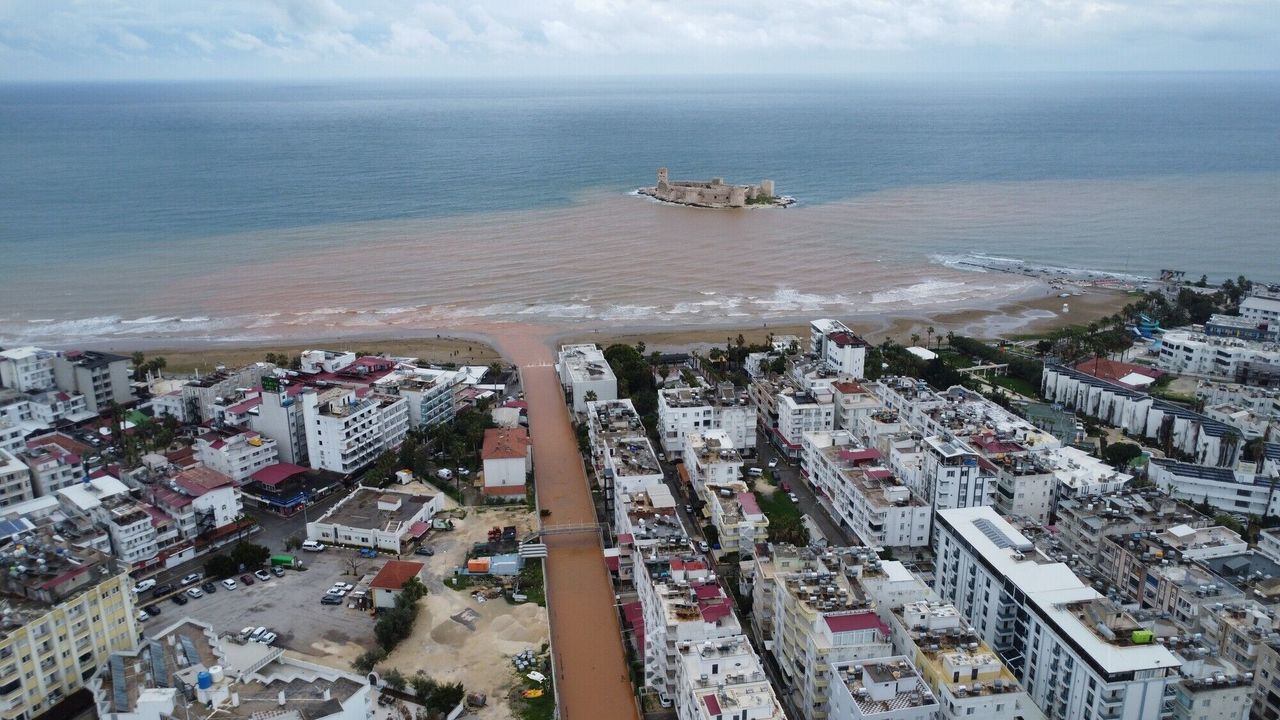 Son yağışlarla birlikte Kızkalesi Mahallesi'nden geçen Karyağdı deresi ise sel sularıyla coştu. Denize akan sel suları turkuaz rengi ile bilinen Kızkalesi çevresini hem çamura hem de kahverengiye bürüdü. Yayılan sel suları dron ile de görüntülendi. Sel sularıyla dereden gelen çöpler ise dalgalarla kıyıya vurmaya başladı.