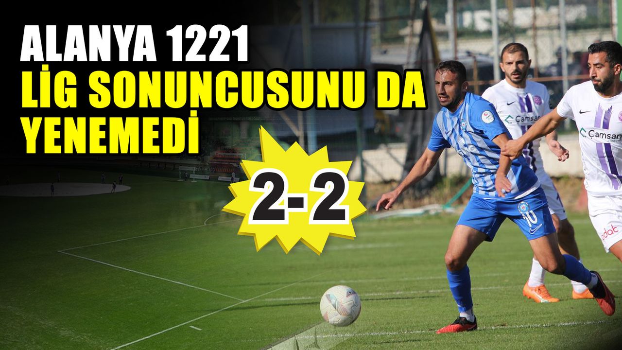 Maça adeta yenik başlayan Alanya 1221 Takımı, 8’inci dakikada Gökdeniz Kara’nın golüyle 1-0 geriye düştü. 37’nci dakikada Samet Aydın’ın golüyle soyunma odasına 1-1 eşitlikle giren Antalya ekibi, 53’üncü dakikada yine Samet’in golüyle 2-1 öne geçti. 78.dakikada Hasan Yurtseven’in ikinci sarı karttan kırmızı kartla oyun dışı kalması sonucu 10 kişi kalan Alanya 1221, 90.dakikada Sirac Bera Atmaca’nın golüne engel olamayınca seyircisi önündeki maçtan 2-2’lik beraberlikle ayrıldı.