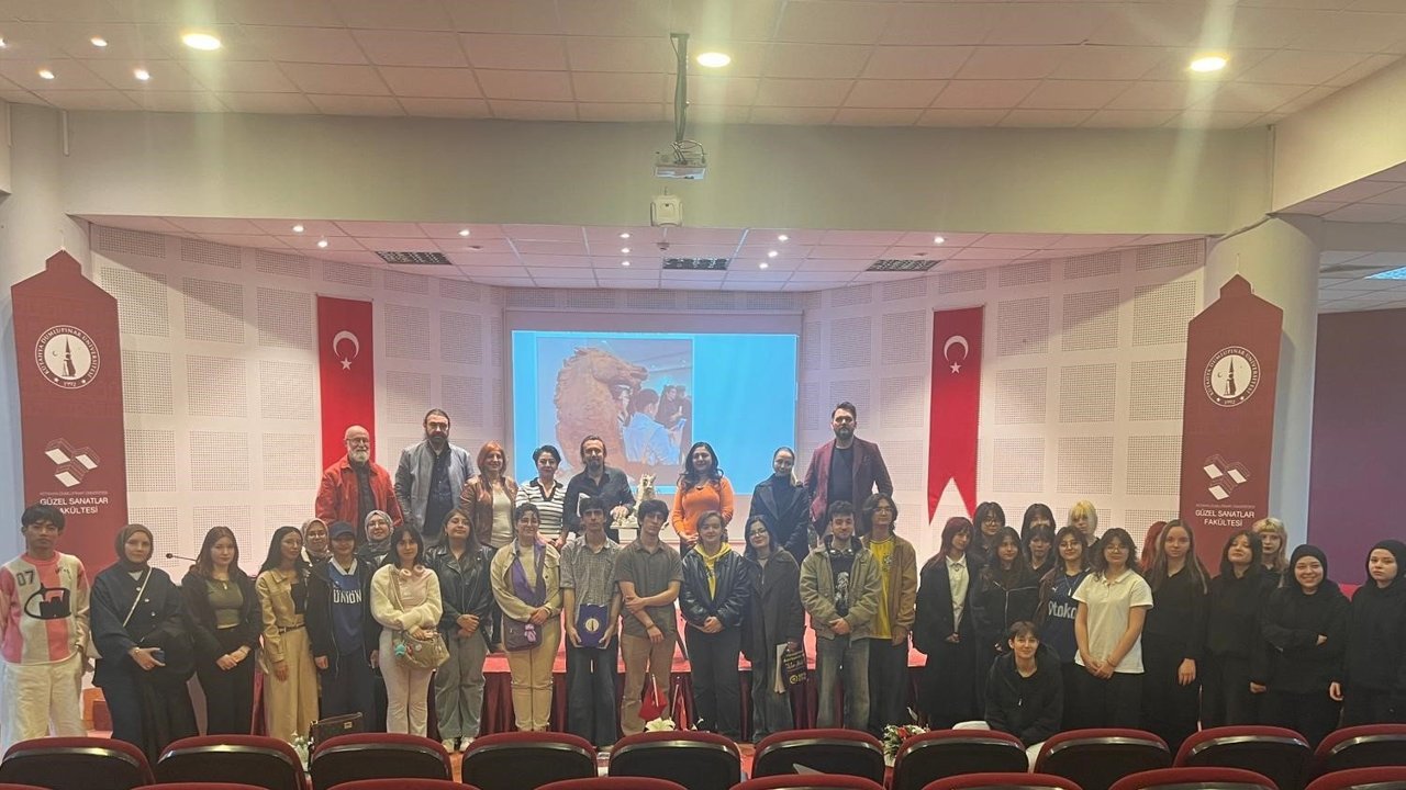 Etkinliğin söyleşi bölümünde çağdaş sanat ile geleneksel değerler arasındaki ilişki masaya yatırıldı. Çevikbaş, sanatın coğrafyadan bağımsız düşünülemeyeceğini belirterek, üretimlerinde özellikle Likya bölgesinin izlerini taşıdığını ifade etti. Kültür ve Turizm Bakanlığı ile yürüttüğü “Likya’nın Atları” projesi kapsamında geliştirdiği teknik ise büyük ilgi gördü: Demir tozu ve epoksiyi bir araya getirerek, eserlerine topraktan yeni çıkarılmış tarihi bir kalıntı görünümü kazandırıyor. Sanatçı, bu yöntemi katılımcılara uygulamalı olarak da gösterdi. Program, soru-cevap bölümünde öğrencilerin yoğun katılımıyla devam ederken, etkinlik sonunda toplu fotoğraf çekimi ve plaket takdimi gerçekleştirildi. Etkinliğin açılışı, Resim Topluluğu danışmanı Doç. Serpil Akdağlı’nın konuşmasıyla yapılırken, kapanışta Resim Bölüm Başkanı Prof. Dr. Selda Mant Menay tarafından sanatçıya teşekkür plaketi sunuldu.