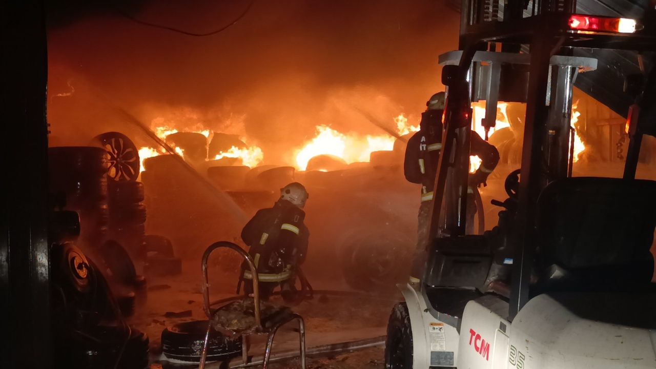İşyerinin tamamen lastikle dolu olması nedeniyle itfaiye ekipleri müdahalede güçlük yaşarken, alevlerin içerisine girerek yangına müdahalede ettiler. İtfaiye ekiplerinin yangını kontrol altına almasının ardından Manavgat Belediyesine ait iş makineleri yanan lastikleri işyerinin dışarısına çıkararak itfaiye ekiplerinin soğutma çalışmasına yardımcı oldu.