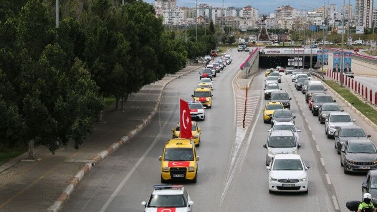 Motorize ekipler öncülüğünde gerçekleştirilen kortej Gazi Mustafa Kemal Bulvarı, Akdeniz Bulvarı, Atatürk Caddesi istikametinden Eski Lara Yolu’na doğru hareket etti.
