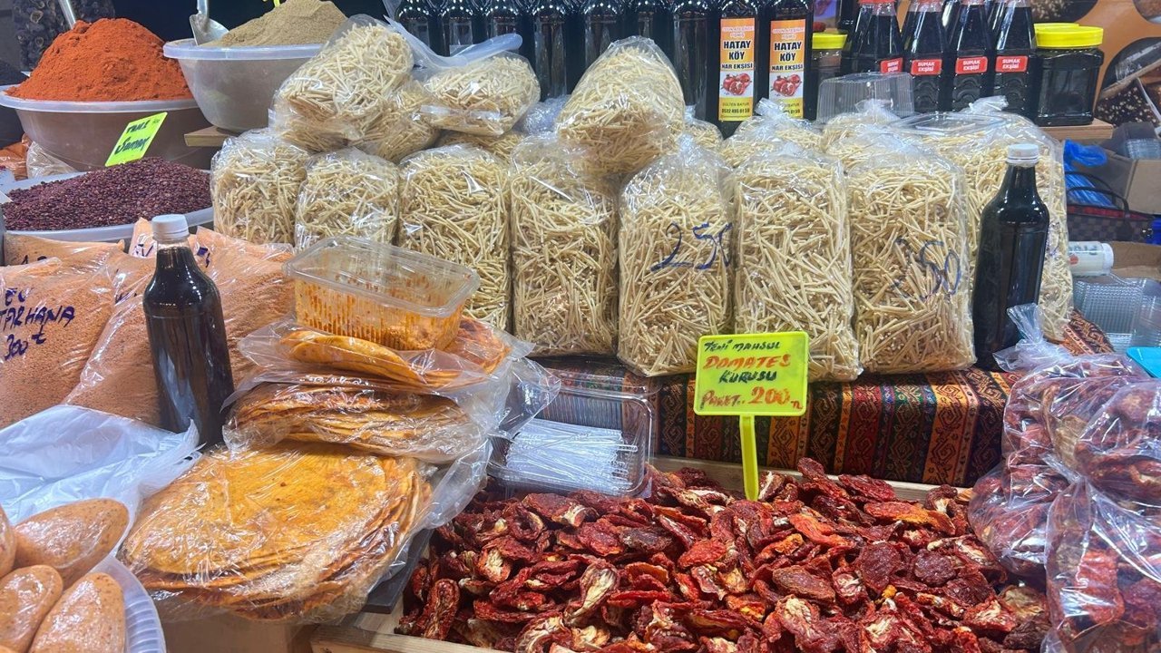Fuarı organize eden Ertuğrul Cuma Temel, Cam Piramit’e gelenlerin Hatay’da olan her ürünü bulabileceğini söyledi. Stantlarda yer alan ürünlerin saymakla bitmeyeceğini belirten Temel, “Hatay kömbesi, kabak tatlısı, zahter, zeytin, peynir, baharat çeşitleri, içli köfte, sarma, dolma, kağıt kebabı, Harbiye dürümü, nar ekşisi, biberli ekmek, kekik, zahter, erişte, salça çeşitler başta olmak üzere tüm ürünlerimizi getirdik. Lezzetlerin yanında sabunlarımız, ipeklerimiz ve dokumalarımız da var” dedi.