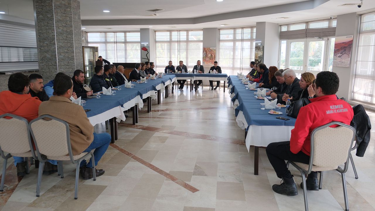 Kemer Uygulama Oteli’nde düzenlenen toplantıya, Kaymakam Solmaz’ın yanı sıra, Kemer Jandarma Komutanı Ömer Seyhan, Kemer Emniyet Müdür Vekili Yıldırım Ünal, Kemer Sahil Güvenlik Komutanı Soner Tuna, Kemer Belediyesi Afet İşleri Müdürü Fevzi Uzun, Kemer Arama ve Kurtarma Derneği (KEMKUT) Başkanı Emre Uğur, daire müdürleri ile muhtarlar katıldı.