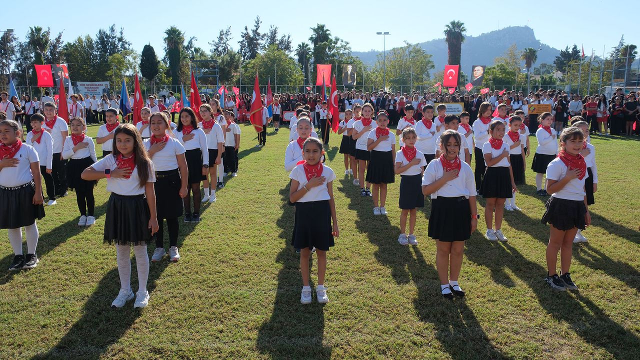 Kemer İlçe Milli Eğitim Müdürlüğü tarafından organize edilen program, Kaymakam Solmaz ve Başkan Topaloğlu'nun öğrencileri selamlamasıyla başladı. Saygı duruşunda bulunulmasının ardından İstiklal Marşı'nın okunmasıyla devam eden programda Kemer Anadolu Lisesi öğrencilerinden Yusuf Gençay, Atatürk'ün Gençliğe Hitabesini okudu. Programda, öğrenciler, Cumhuriyet konulu şiirler okuyup çeşitli halk oyunları gösterileri de sundu.