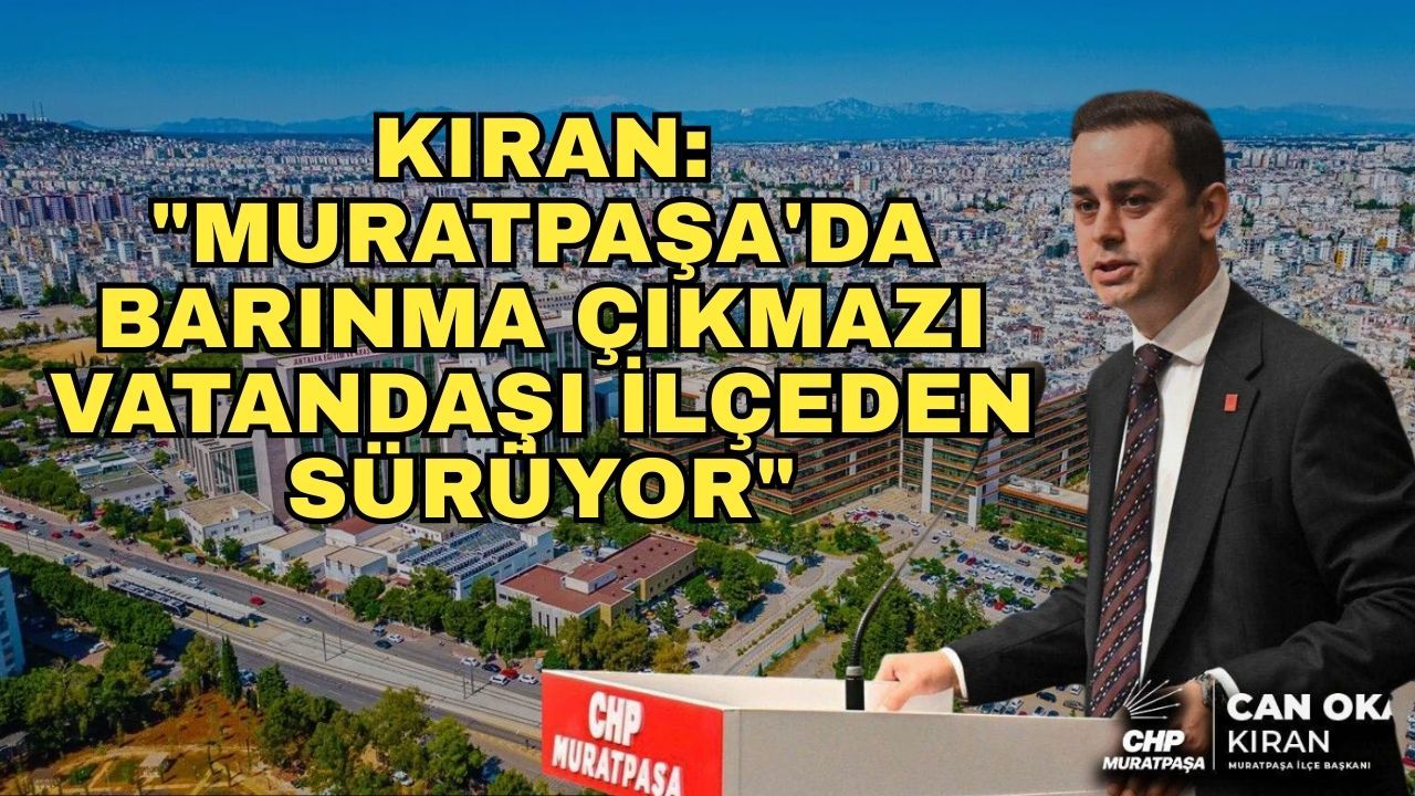 Cumhuriyet Halk Partisi (CHP) Muratpaşa İlçe Başkanı Av. Can Okan Kıran, Antalya’nın Muratpaşa İlçesi’nde her geçen gün artan barınma krizine ilişkin yazılı açıklamada bulundu. Fahiş kira artışları nedeniyle asgari ücretli, emekli, gençler ve kamu çalışanlarının kendi yaşadıkları ilçede barınamaz hale geldiğini belirten Başkan Kıran iktidara yüklendi.