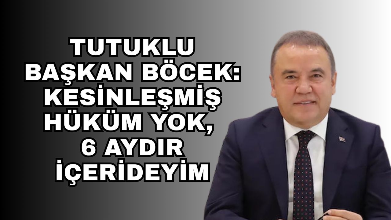 Cezaevinde bulunan Antalya Büyükşehir Belediye Başkanı Muhittin Böcek, kamuoyuyla paylaştığı mesajlarında siyasi ve toplumsal yaşamı boyunca Antalya’ya hizmet ettiğini vurgulayarak, 6 aydır görevinden uzak kaldığını belirtti. Kesinleşmiş bir yargı kararı bulunmadığına dikkat çeken Böcek, Antalya halkı ile yeniden bir araya geleceği günlere olan inancını koruduğunu aktardı.
